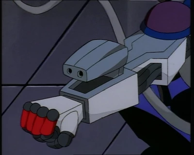 Двуствольная лазерная пушка, вероятно, лучшая особенность руки. Это встроенное оружие чрезвычайно мощное, способное выпускать пару мощных лазеров с каждым выстрелом, в быстрой последовательности. Эти лазеры достаточно сильны, чтобы пробивать большинство веществ, хотя, как и большинство пушек, они не могут пробить плутаркианскую сталь. Мощность лазеров, возможно, регулируется; это никогда не было показано в сериале. Дополнительное вооружение, показанное только в эпизоде "Pitfall", — это небольшое катапультообразное устройство, которое можно выдвинуть из руки и которое может забросить небольшую взрывчатку на несколько сотен ярдов.