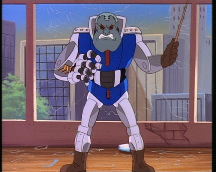 - Силовая перчатка: У него непропорционально большая рука, которая дает ему силу.