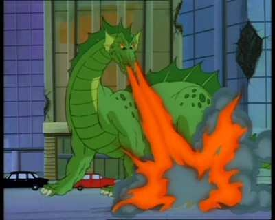 - Наши драконы — другие: Большой зелёный дракон, который атакует, извергая огонь из ноздрей.